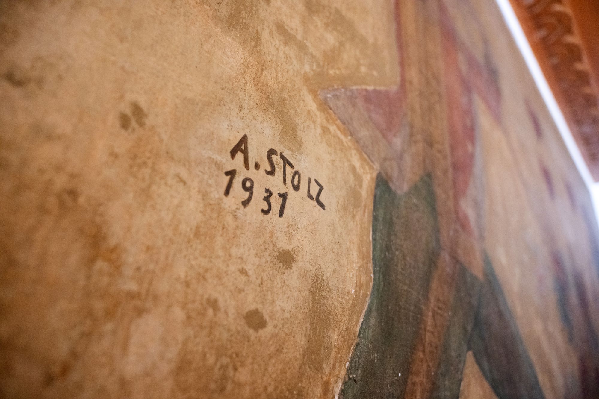 Unsere Bar ist Treffpunkt für Frühaufsteher, Stammgäste, Genießer und Plauderer. Modern gestaltet, aber mit Geschichte: In den Wänden schlummern originale Fresken von A. Stolz (1931) – sie erzählen ein Stück Kultur, während bei uns das Leben weitergeht.