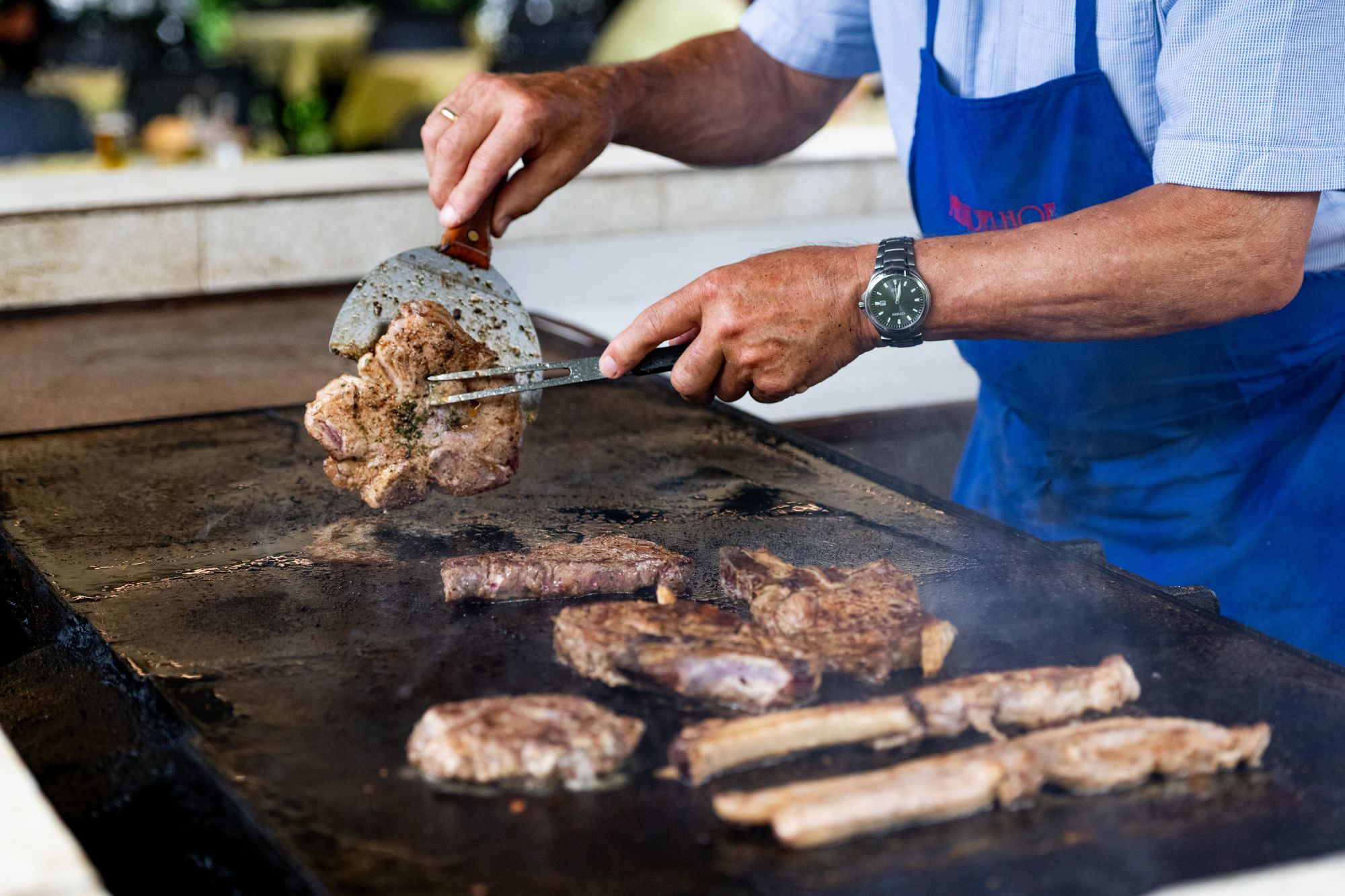 Von 25. April bis 30. September lebt unser Biergarten. Unter Nussbaum und Weinreben gibt’s kühle Getränke und heiße Grillklassiker. Das Beste: Der Seniorchef persönlich – gelernter Metzger – grillt mitten im Biergarten. Rippen, Bratwurst, Entrecôte, Grillgemüse – alles frisch vom Rost, alles mit Leidenschaft.